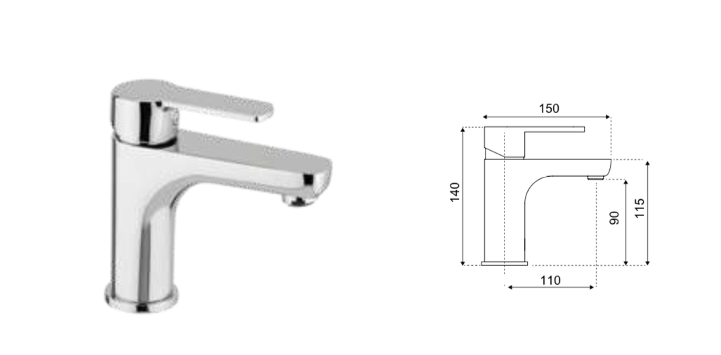 Monocomando per lavabo con scarico 1”1⁄4 e flessibili in acciaio inox