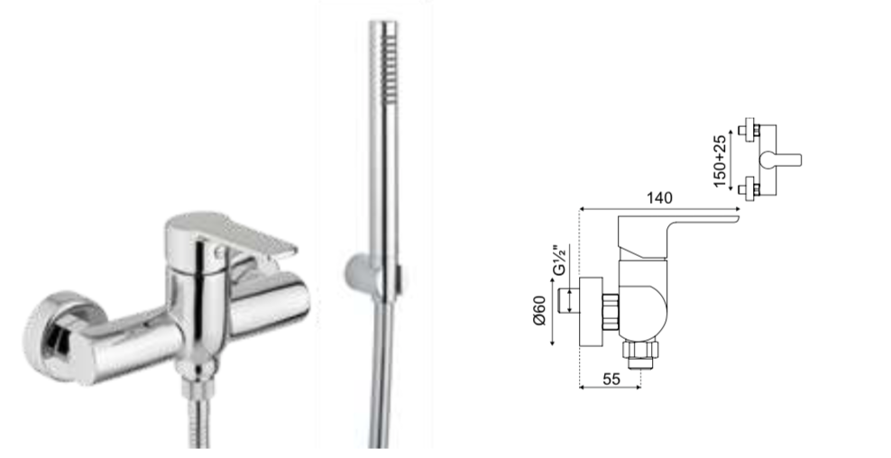 Monocomando doccia esterno con attacco da 1/2” completo di flessibile e doccetta